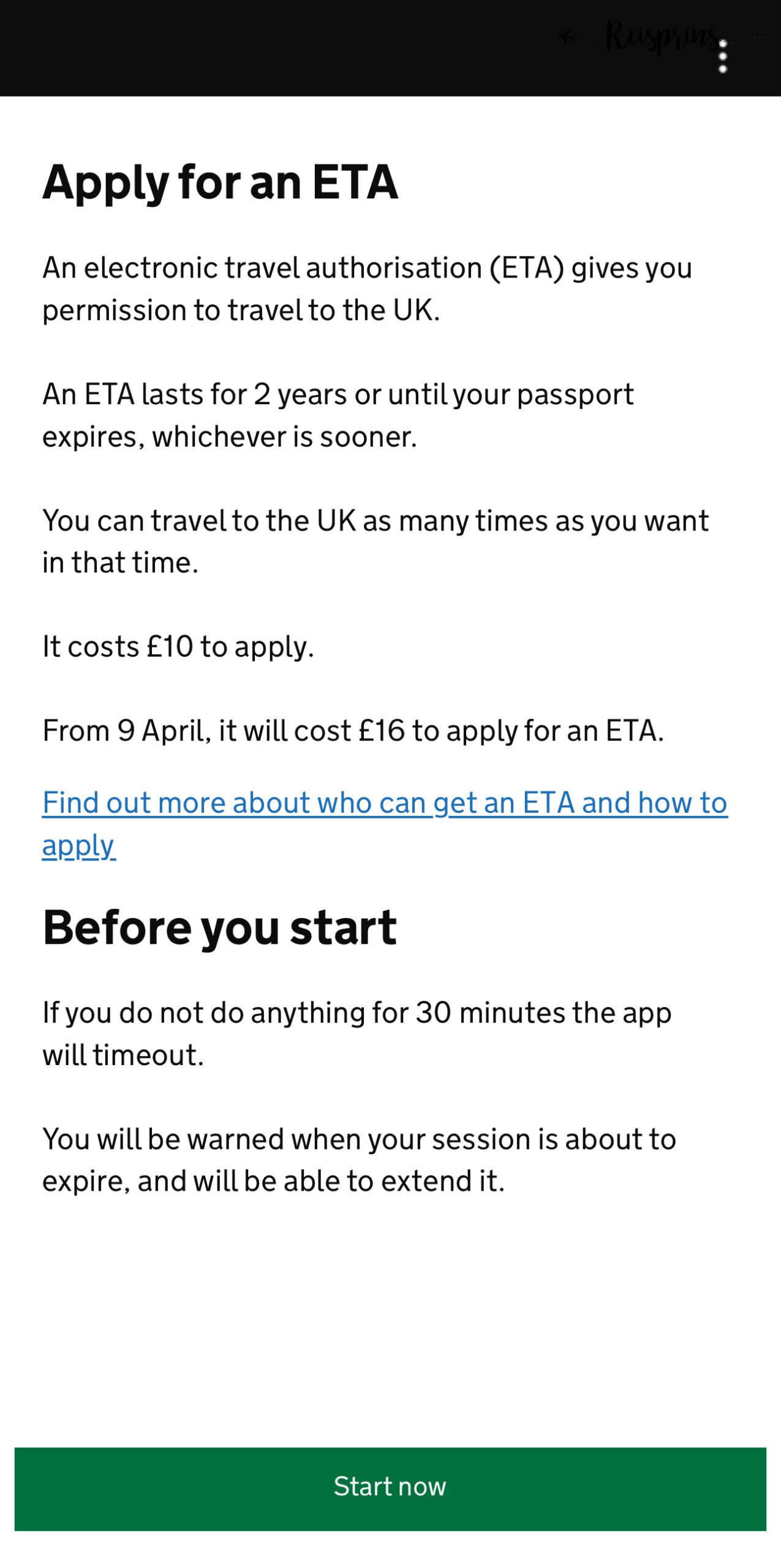 In deze uitleg nemen we stap voor stap door hoe je jouw ETA voor het Verenigd Koninkrijk moet aanvragen via de app. Via de website moet je ongeveer dezelfde stappen doorlopen. Omdat het aanvragen via de app veel praktischer is hebben we gekozen om ons hier op te richten. Omdat het best veel stappen zijn die je moet doorlopen hebben we ze opgesplitst in drie delen.