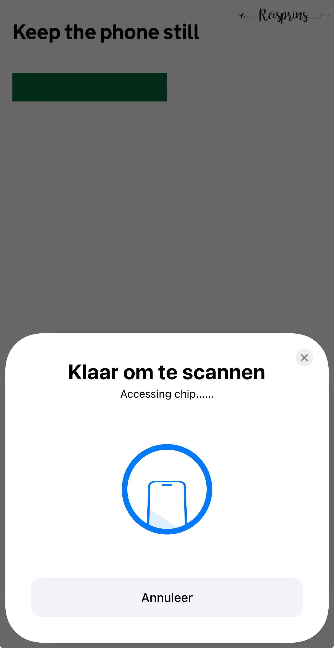 Hierna is het tijd om je paspoort in te gaan scannen. Dat is namelijk het grote voordeel van het gebruiken van de app. Met de app is het mogelijk om de chip in je paspoort te scannen en om makkelijk een correcte foto te maken van je paspoort. Vanaf 2006 is dit in Nederland geïntroduceerd, dus de kans is vrij groot dat ook jouw paspoort dit heeft.